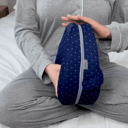 Theorho Hizalama Yastığını bacaklarınızın arasına koyduğunuzda, kalçalarınız ve omurganız nötr ve düzgün bir hizada kalır.